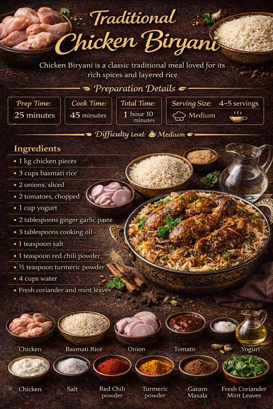 Traditional Meals Traditional Chicken Biryani Recipe Chicken Biryani is a classic traditional meal loved for its rich spices and layered rice.